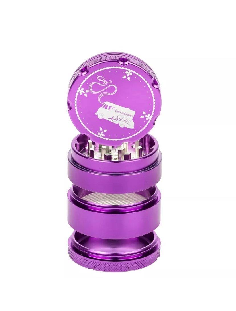 This solid Cheech & Chong 4-part grinder is made entirely out of CNC (computer numeric controlled) aluminum and measures 5 cm / 2 inches across. The pocket size grinder is equipped with sharp, diamond-shaped teeth that effortlessly shred your favorite dry herbs into a fluffy, more manageable consistency.